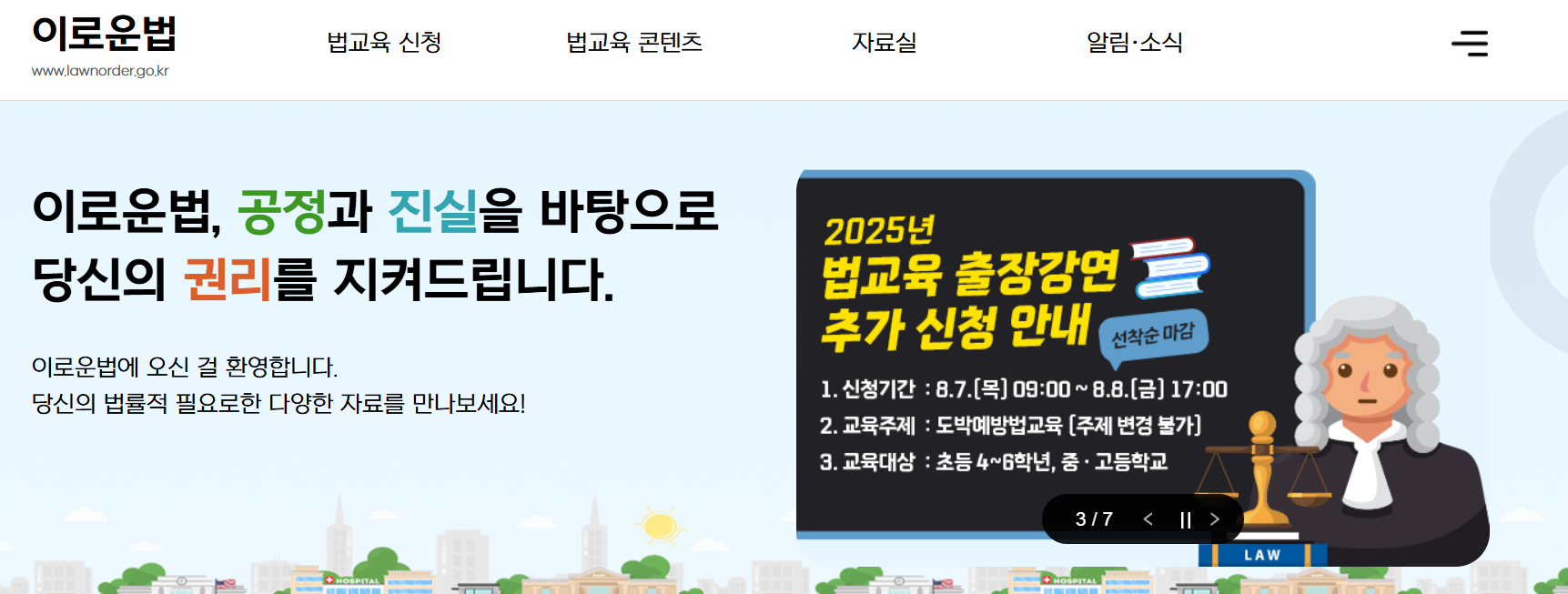 이로운법(www.lawnorder.go.kr)은 국민에게 법에 대한 지식과 정보를 제공하는 법무부의 법교육 온라인 플랫폼입니다.