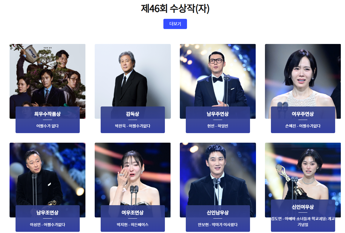 - 남우조연상과 여우조연상: 주연급 못지않은 존재감으로 작품에 기여한 배우에게 수여